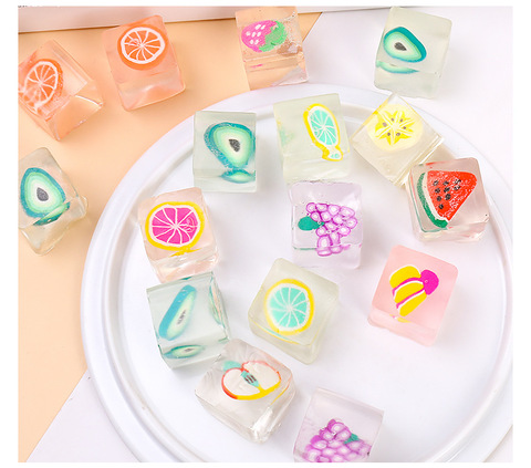Transparent Fruit Ice Cube Stress Ball TPR TPR Transparent Squeeze Toy for Anxiety Reduction Novel Sensory Mochi Toy for